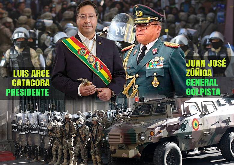 El día miércoles 26 de junio se produjo un “intento de golpe de Estado” en Bolivia, encabezado por el general Juan José Zúñiga, quien con grupo de militares y una tanqueta intento irrumpir en el Palacio de Gobierno en el centro de la Paz. El hecho duró poco más de dos horas, Zúñiga fue detenido y tuvo acceso a los medios de comunicación a los que declaró que la movilización militar fue acordada con el presidente Luis Arce, para recuperar la popularidad que está a la baja ante la grave situación económica que vive ese país.