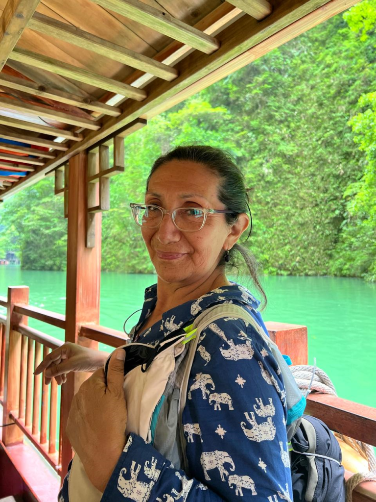 Cansadas tomamos una barcaza (20 metros de largo), el viaje tranquilo, nos permitió reponer fuerzas, media hora después enfrente las escalinatas (en China, están en todo lado), tras un largo trecho, tomamos el bus de regreso.
