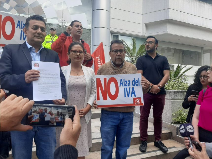 El partido Unidad Popular, y el Frente Popular presentaron en dias jueves 14 de marzo de 2024, la primera demanda de inconstitucionalidad contra alza del IVA y solicitan a la Corte Constitucional, adopte medidas cautelares contra incremento del Impuesto al Valor Agregado, IVA. La demanda se presentó dos días después de publicada la Ley en el Registro Oficial.