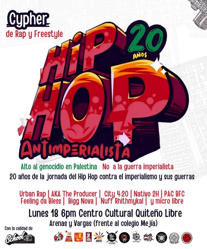 En el año 2006, en los años de auge del movimiento Hip Hop, se dio la primera jornada antiimperialista en el país, con potentes banderas de lucha, una postura de izquierda y hasta revolucionaria, respecto al sistema capitalista y los gobiernos de turno en el Ecuador: el rechazo a la guerra de invasión en Irak, la exigencia de la salida de la base de Manta, la oposición firme al TLC, y lo que se denominaba «el Imperio y la Guerra» haciendo referencia en especial al imperialismo yanqui y sus acciones guerreristas en busca de un nuevo reparto mundial y su expansión.