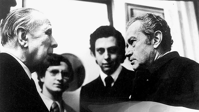 BORGES: Finalmente, Rulfo. Ya no puedo ver a un país, pero lo puedo escuchar. Y escucho tanta amabilidad. Ya había olvidado la verdadera dimensión de esta gran costumbre. Pero no me llame Borges y menos «maestro», dígame Jorge Luis.