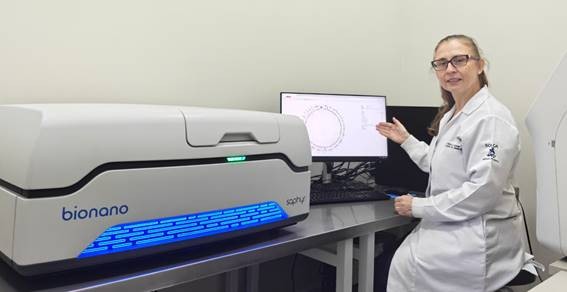 El primer resultado de OGM en el país se obtuvo a partir del estudio de un paciente con leucemia mieloide crónica (LMC). Mediante citogenética convencional se había identificado la clásica translocación entre los brazos largos de los cromosomas 9 y 22, conocida como cromosoma Filadelfia, hallazgo que fue confirmado posteriormente por FISH.