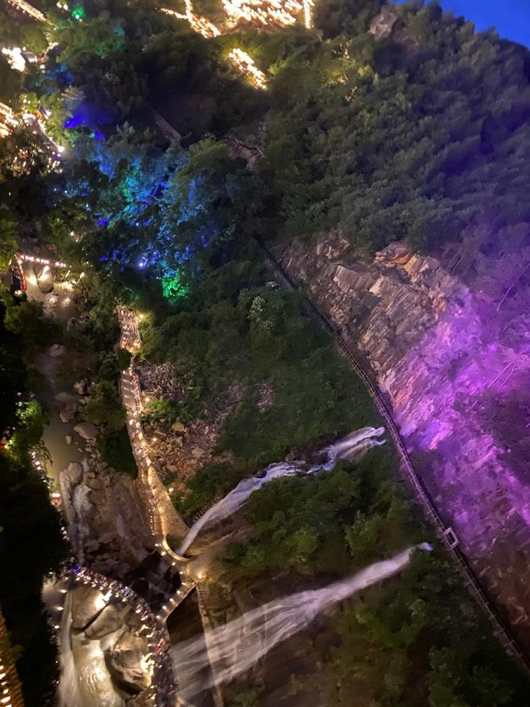 Ya anocheciendo y tras caminar varias horas por senderos, jardines, subir y bajar graderíos, llegamos a lo alto del cañón. Como recompensa inesperada, un despliegue de luces y color, convirtieron el espacio, en un pueblo de dioses y diosas; por unos instantes fui actora de una película china con todo y sus efectos especiales. Al terminar el espectáculo, armadas con los tickets, fuimos en búsqueda del bus, una multitud agitada, compuesta por agentes de viaje y guías turísticos, que con megáfono en mano llamaban a sus grupos. Al instante la paz de desvaneció y el reino del caos arribó; por suerte, mi hija que tiene vista de águila alcanzó a ver nuestro bus, subimos apresuradas y retornamos a Shangrao.