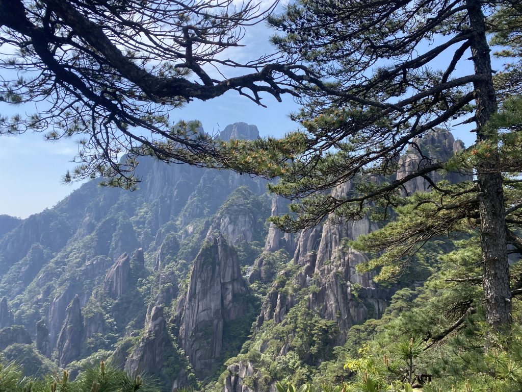 Al día siguiente tomamos el bus en la estación de autobuses de Shangrao Este, hacia Jinsha, al llegar subimos al teleférico, durante el ascenso se podía apreciar la solidez de las columnas de granito, los pronunciados acantilados, sus afilados bordes que cortaban el viento y la respiración, denotando su origen magmático antiguo como la vida misma.