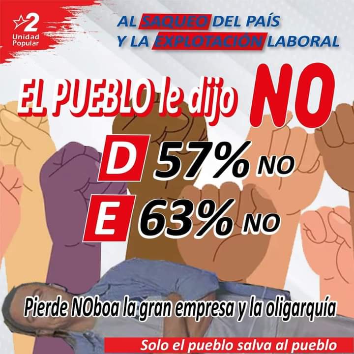 El pueblo ecuatoriano se ha pronunciado. Han triunfado los derechos de las y los trabajadores, la obligación del Estado de garantizar trabajo digno para miles de jóvenes que hoy no tienen oportunidades, ha ganado la soberanía del país por sobre los intereses de las empresas internacionales que intentaron someternos a sus mezquinos intereses. Hoy han triunfado los pueblos sus organizaciones sociales y su sabiduría que no se dejaron engañar por un presidente mentiroso.